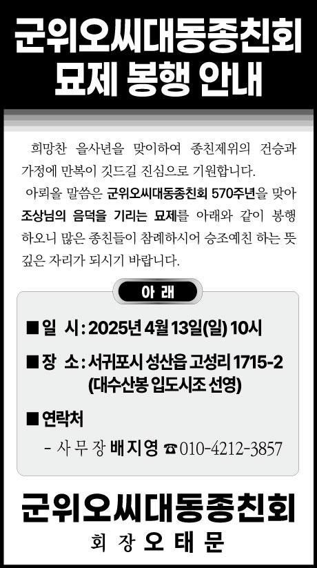 2025년 묘제봉행 신문 광고 내용